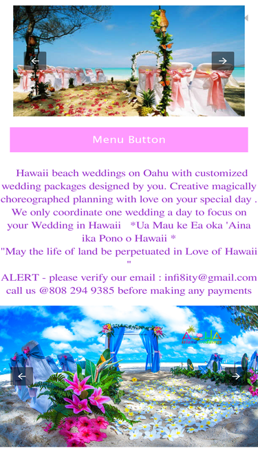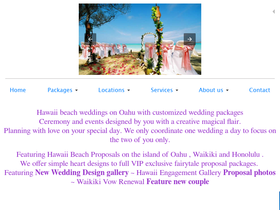 89%wedding in hawaii specializing in beach ceremonies by aloha island weddings featuring beautiful enchanting creative designs from start to finish , we are based in honolulu and are event wedding planners on the island of oahu and use wedding locations such as waikiki , makua , downtown honolulu, waikiki, waialae , waimanalo, makapuu ,north shore and kauai. aloha island weddings also offers vows renewals in hawaii with ceremony packages to help make your event unique and personalble. we take care of all your wedding needs from simple flower bouquet to photography and arches . our hawaiian oahu planning packages are affordable that fit every budjet from simple to extravagant affairs .