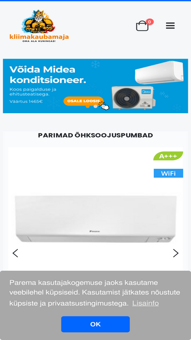 100%Kliimakaubamaja.ee on e-pood ning turvaline ostukoht. Meie tootevalik on väga laialdane: soojuspumbad, õhk-vesi soojuspumbad, maasoojuspumbad, konditsioneerid, ventilatsiooniseadmed, soojuskiirgurid, õhuniisutid, õhukuivatid ja õhupuhastid.