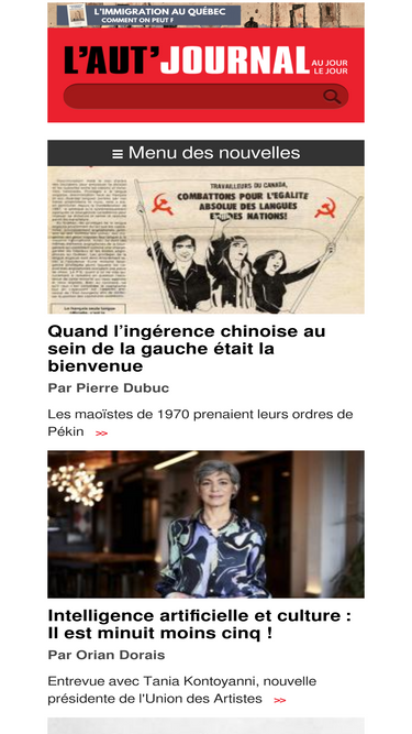 74%L’aut’journal est un journal indépendant, indépendantiste et progressiste, fondé en 1984. La version sur support papier est publiée chaque mois.