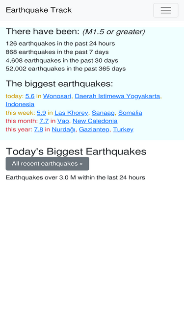 74%maps, lists, data, and information about today's earthquakes, lists of the biggest earthquakes, and recent earthquakes.