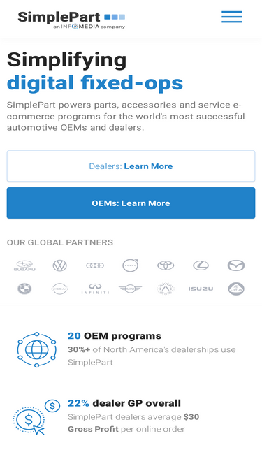 94%SimplePart powers parts, accessories and service e-commerce programs for the world's most successful automotive OEMs and dealers.