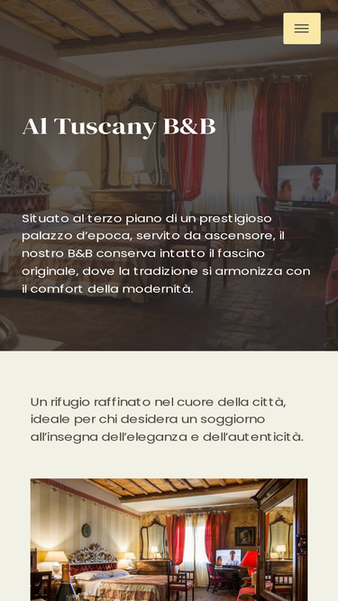 100%Al Tuscany B&B Situato al terzo piano di un prestigioso palazzo d’epoca, servito da ascensore, il nostro B&B conserva intatto il fascino originale, dove la tradizione si armonizza con il comfort della modernità. Un rifugio raffinato nel cuore della città, ideale per chi desidera un soggiorno all’insegna dell’eleganza e dell’autenticità. Le Camere Doppia Standard Prenota […]