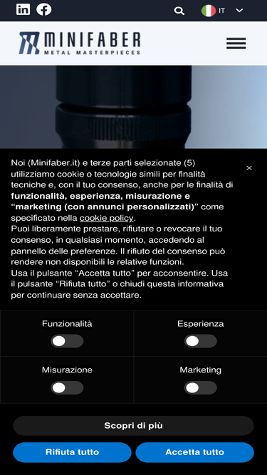 98%Minifaber è un’azienda che, grazie a cinquant’anni di know-how nella lavorazione dei metalli, a continui investimenti in tecnologie e grazie a un approccio orientato all’ascolto del cliente, è arrivata ad essere in grado di realizzare pezzi complessi finiti e assiemati che oggi nessuno è in grado di fare.