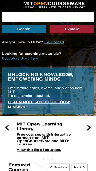 100%MIT OpenCourseWare is a web based publication of virtually all MIT course content. OCW is open and available to the world and is a permanent MIT activity