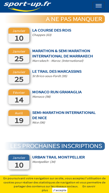 81%choisissez la solution d'inscription en ligne, de résultats, de calendrier... sans compétences techniques, bénéficiez de toutes les fonctions dont vous avez besoin. sport-up.fr, site internet d'inscription en ligne pour des milliers d'organisateurs pour leurs événements sportifs. (course à pied, course virtuelle, course connecté, triathlon, vélo, trail, rando ...)
