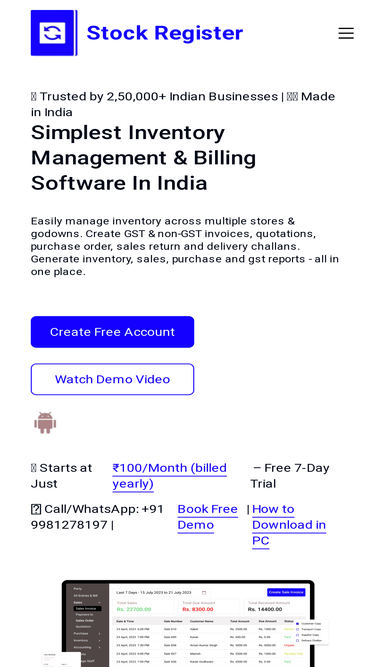 80%Stock Register is an Indian inventory management & billing app built for small businesses to manage inventory and billing of all stores & godowns. Track daily sales, profit, inventory, create sales invoices & manage customers & suppliers.