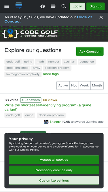 74%Q&A for programming puzzle enthusiasts and code golfers