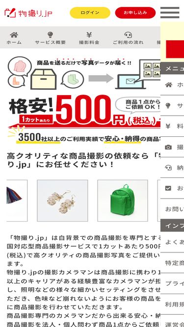 85%オンラインで全国対応の商品撮影に特化した撮影代行サービス「物撮り.jp」では、商品1点から1カットあたり550円(税込)で撮影可能です。ウェブサイトから撮影依頼を簡単にお申し込みいただけます。
