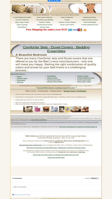 99%devoted to your luxurious comfort and style with dreamy comforters, pillows, featherbeds, blankets, sheets, mattress pads, towels and sleepwear.