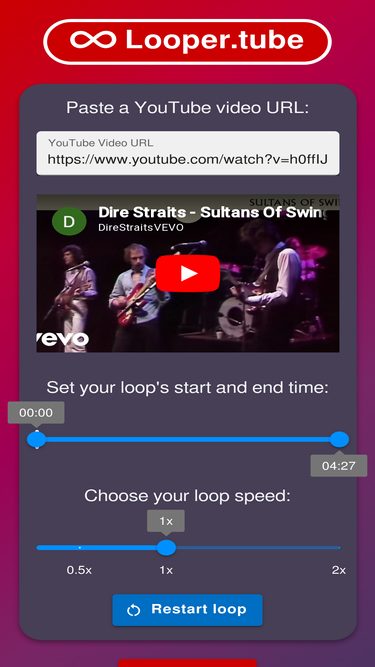 93%with looper.tube you can easily loop any part of any youtube video and customize the playback speed!