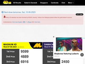 96%All 4D Real Time Live 4D Draw Results (Keputusan 4D) - Magnum 4D, Sports Toto 4D, Da Ma Cai, Sabah 88 Lotto 4D, Sarawak Special Cash Sweep 4D, STC 4D, Singapore Pools 4D + Toto, Malaysia live 4d result