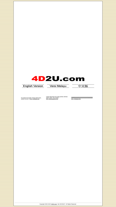95%4d2u.com - malaysia's first 4d results statistics website - analysis on magnum, da ma cai (pmp 1+3d), sports toto, singapore, sabah, special cash sweep & sandakan