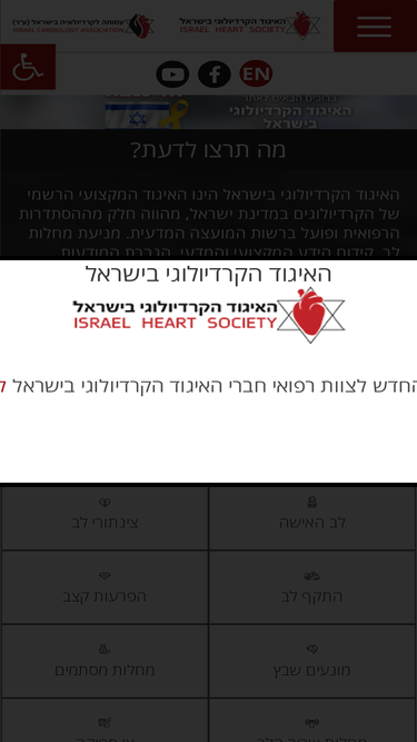 89%כאן תוכלו למצוא מידע בנושא חדשות לחולי לב. האיגוד הקרדיולוגי בישראל הינו האיגוד המקצועי הרשמי של הקרדיולוגים במדינת ישראל.