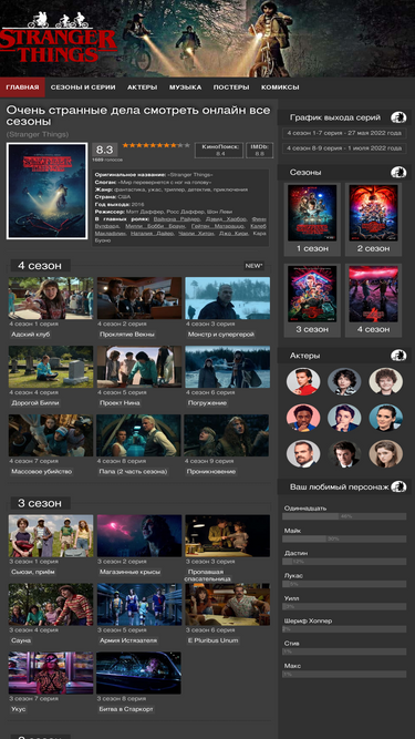 Смотреть онлайн все серии сериала Очень странные дела в хорошем качестве HD (1080 и 4К) на русском языке или в оригинальной озвучке. Также в нашем онлайн кинотеатре Вы можете просматривать сериал с мобильных устройств и планшетов.