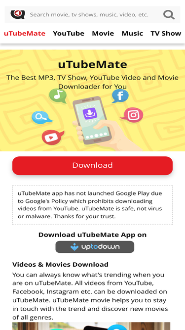 99%uTubeMate is a better place to watch and download full movies online, YouTube videos, top MP3 songs, TV shows and more in HD for free. You can find free English movies, Hindi movies, Bollywood movies, action movies, viral videos online to stream and download instantly.