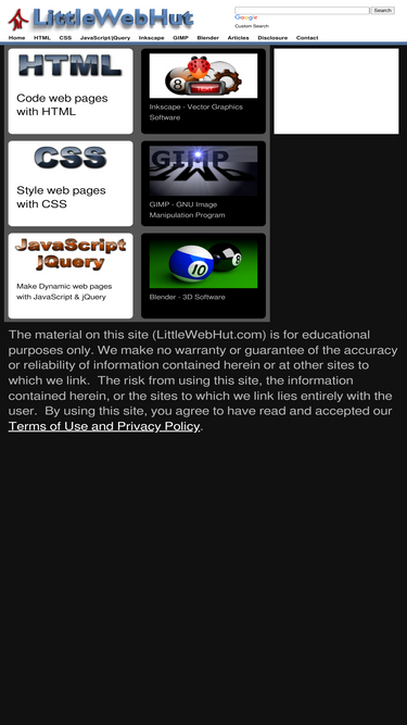 87%html, xhtml and css reference. blender, gimp and inkscape tutorials.