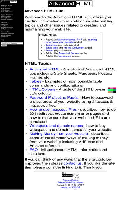 100%a guide to html, including tables, frames, javascript, style sheets, tips etc.