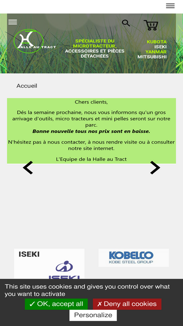 82%importateur de microtracteurs neuf et occasion de 12 a 40 ch et de minipelle d'occasion de 500 a 2500 kg, revente de tous les accessoires neuf pour microtracteur