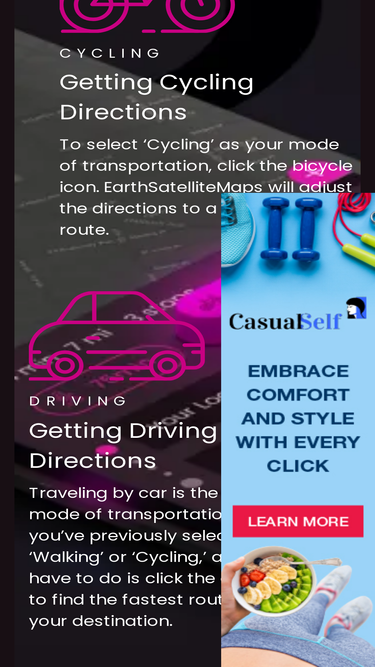 76%welcome to earthsatellitemaps! we provide free and fast directions and maps that are designed to make your travels easy and fun. in addition to driving directions, earthsatellitemaps provides bus and transit directions as well as a flight tracker. earthsatellitemaps uses state-of-the-art technology to ensure that we always provide the best routes available and factor in live traffic to get you to your destination on-time.