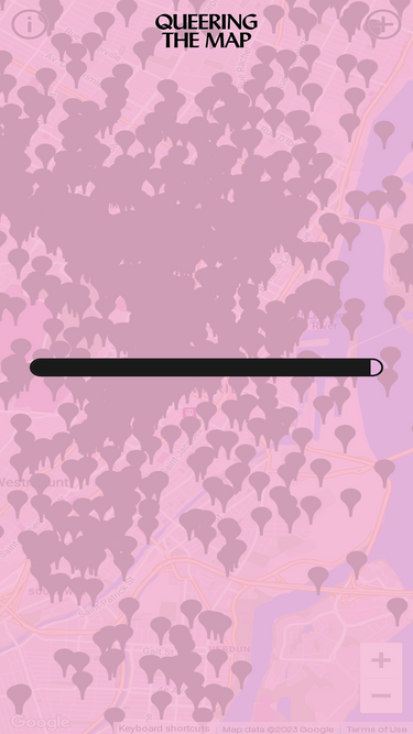 77%Queering the Map is a community generated counter-mapping platform for digitally archiving LGBTQ2IA+ experience in relation to physical space.
