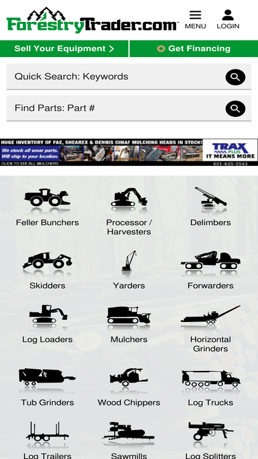 73%New & Used Forestry and Logging Equipment For Sale Feller Bunchers, Processor / Harvesters, Delimbers, Skidders, Yarders, Forwarders, Log Loaders, Mulchers, Horizontal Grinders, Tub Grinders, Wood Chippers, Log Trucks, Log Trailers, Sawmills, Log Splitters, Slasher Saws, Stump Grinders, Dozers with Winch, Attachments, Dismantled Machines, Parts, and more at ForestryTrader.com