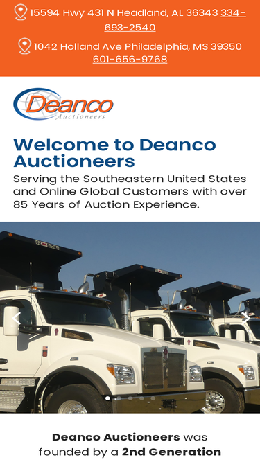 71%Deanco Auctioneers specializes in heavy construction equipment, trucks, farming equipment, and more. With over 85 years of experience, we serve the Southeastern US and global customers. Contact us at our locations in Headland, AL, and Philadelphia, MS for more details.