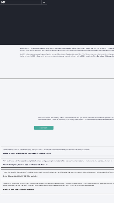 100%Keith Ferrazzi is an American entrepreneur and recognized global thought leader in the relational and collaborative sciences. As Chairman of Ferrazzi Greenlight and its Research Institute, he works to identify behaviors that block global organizations from reaching their goals and to transform them by coaching new behaviors that increase growth and shareholder value. Keith has introduced a new transformational operating system he calls co-elevation that leads to exponential change and value. Formerly he was the CMO of Deloitte and Starwood Hotels.