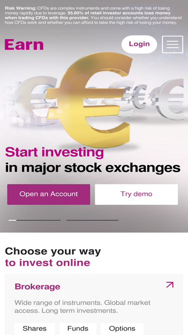 71%Trading Account - Trade, Hedge, and Invest in Over 1,000 CFD Instruments with Broker Earn. Open Online Stock Brokerage Account. Use our Online Trading Platform MetaTrader 5. Trade with us and develop your trading experience!