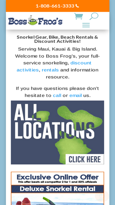 75%Boss Frog's is the one stop shop for rentals! Snorkel gear, bikes, surf & paddle boards, body boards, beach chairs & more. Get discount activities here!!