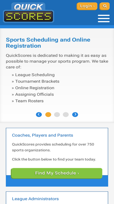 66%online sports scheduling software for leagues and tournaments and administrative tool for sports league administrators.