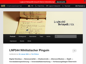 O alternativlos.org ocupa o posto de 4º site mais semelhante ao metaebene.me e o logbuch-netzpolitik.de aparece em quinto lugar em janeiro 2026.