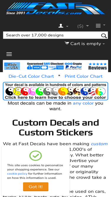 100%we help you find custom decals. we offer custom helmet decals, custom car decals, custom window decals along with custom truck decals. we help you find custom stickers too. custom bumper stickers, custom window stickers, custom car stickers and custom stickers for your truck. we can make any type of custom decal or custom sticker you can think of!