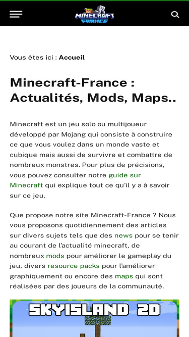 87%Minecraft-France est le site francophone dédié à Minecraft : actualités, mods, guides et ressources à découvrir !