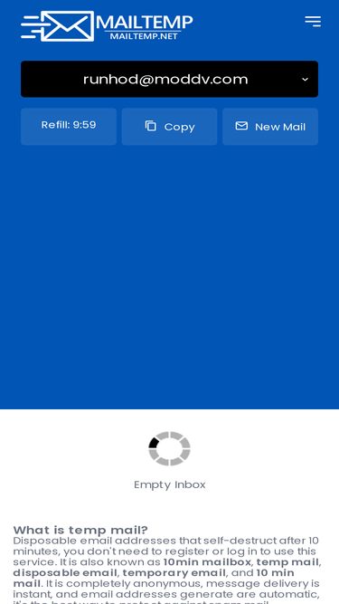 10 minute mail provides temporary,anonymous, free, disposable email address. Allows you to receive emails for a safe registration on sites and services!