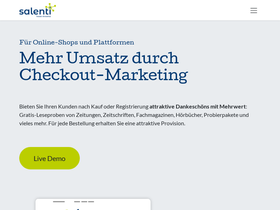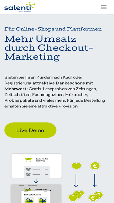 89%Bieten Sie Ihren Kunden nach Kauf oder Registrierung attraktive Dankeschöns mit Mehrwert: Gratis-Leseproben von Zeitungen, Zeitschriften, Fachmagazinen, Hörbücher, Probierpakete und vieles mehr.