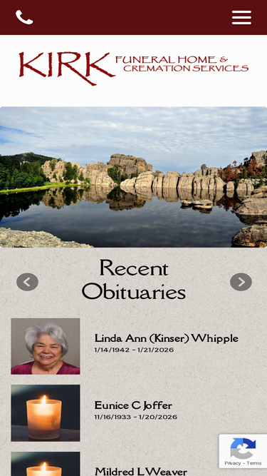 100%Welcome to Kirk Funeral Home Cremation Service. Rapid City and Black Hills Funeral Home. We are glad you came. Kirk Funeral Home Cremation Services officially opened its doors in Rapid City on August 14, 1998. That day brought the realization of a vision.