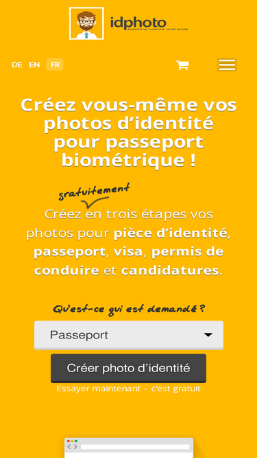 87%chez idphoto, vous pouvez créer des photos biométriques pour votre carte d’identité, passeport, permis de conduire ou votre visa en 3 étapes faciles.