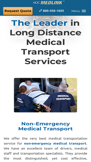 66%Get a free quote for long-distance medical transport services. ACC Medlink offers competitive pricing for Mercedes Sprinter medical transport nationwide. Call 800-550-1025.
