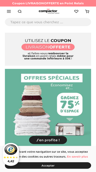 77%Optez pour un sac sous vide et économisez de l'espace de rangement en quelques gestes simples.