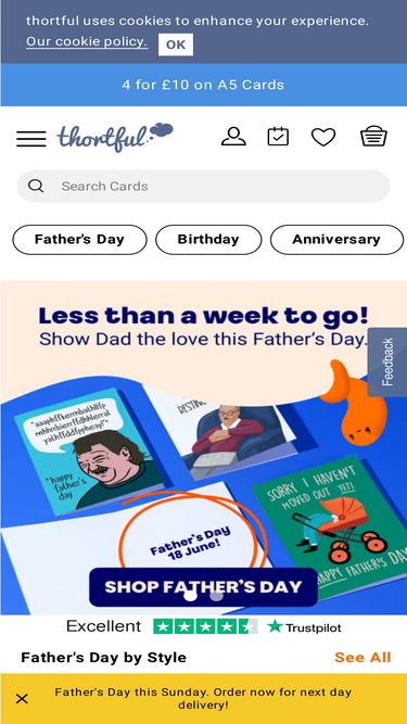 100%Browse thousands of greeting cards online, with 4 for £10 on A5 cards. Order by 6pm for next day delivery with the UK's online greeting card marketplace.