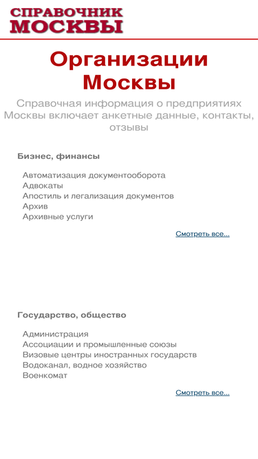 Актуальный справочник организаций в Москве и Московской области - полная информация по адресам, контактам, графике работы. Подробный телефонный справочник коммерческих, государственных и муниципальных предприятий Москвы и Московской области.