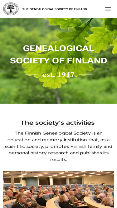 72%The Genealogical Society of Finland is an education and memory institution that, as a scientific society, promotes Finnish family and personal history research and publishes its results.