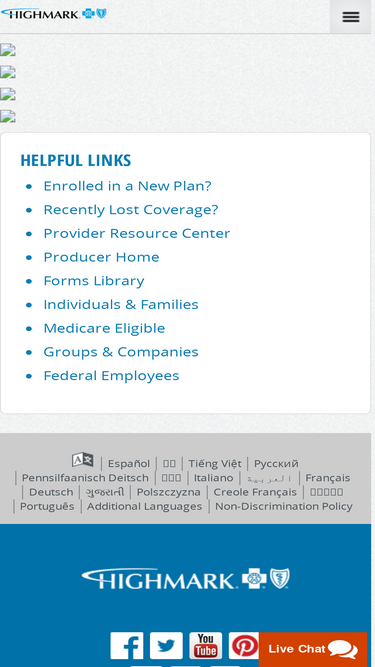 Os outros cinco concorrentes na lista dos 10 principais são highmarkbcbsde.com, highmarkbcbswv.com, yourtracktohealth.com, wholecarepa.com e providers.highmark.com.