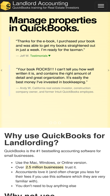 100%use quickbooks for real estate accounting & property management. easily report profit and loss by property, tenant rent rolls, & save time! landlord accounting teaches you everything to use quickbooks for rental bookkeeping. ebook on property management: manage rental houses, apartments, storage units, etc.