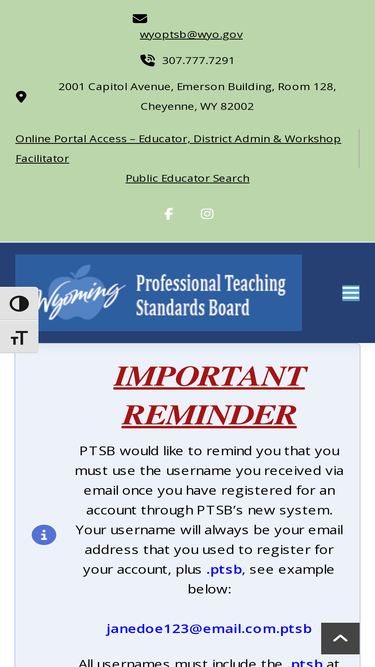 82%General FAQWhat are the requirements for teaching in Wyoming?Complete requirements for teaching in Wyoming can be found on our Becoming Licensed in Wyoming page. How do I get an application?All applications are on the Online Portal. How long will it take PTSB to process my application?Our average processing time for a COMPLETE application four to six weeks.