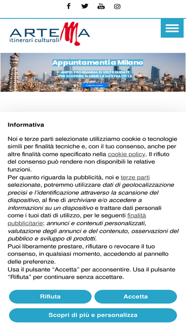 100%Information For the Processing of Personal Data pursuant to Article 13 of Regulation (EU) 2016/679 (version updated on January 27, 2025) The Association Milano & Partners, as the data controller (hereinafter, "Controller"), informs you in accordance with Regulation (EU) 2016/679 ("GDPR") and Legislative Decree No. 196/2003, as amended by Legislative Decree No. 101/2018, that your personal data will be processed in the following ways and for the following purposes. Subject of Processing The Controller processes personal identification data and non-sensitive/special categories of data (hereinafter, "Personal Data" or also "Data") that you provide when navigating the website www.yesmilano.it (hereinafter, "Website"), requesting information, or subscribing to the newsletter. Specifically: name, surname, email address, and any other information you share when requesting information via the contact details on the Website; email address required for subscribing to the "Guida alla città" newsletter; browsing data, such as the IP addresses or domain names of the computers used by users connecting to the Website, the URI (Uniform Resource Identifier) addresses of requested resources, the time of the request, the method used to submit the request to the server, the size of the file received in response, the numerical code indicating the status of the response provided by the server (success, error, etc.), and other parameters related to the user's operating system and computing environment. This information is collected through cookies as described in the Website's Cookie Policy. Purposes and Legal Bases of Processing The Controller will process your Personal Data for the following service purposes and legal bases: execution of the contract and/or fulfillment of pre-contractual obligations, i.e., to allow you to navigate the Website and manage contact and information requests; fulfillment of legal obligations by the Controller, i.e., to comply with obligations required by laws