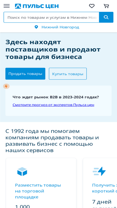 79%портал пульс цен - маркетплейс для профессионалов b2b в нижнем новгороде. размещайте прайс, оставляйте и работайте с готовыми заявками на закупку, оценивайте спрос, участвуйте в каталоге компаний. создайте свой сайт или интернет-магазин. контакты фирм и актуальные цены в разделах: материалы, оборудование, строительство и ремонт, транспорт, промышленные товары.