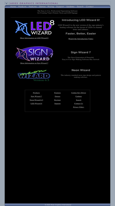 aries graphics international develops design software programs for the global sign industry, including led wizard 7 for creating led channel letter and sign cabinet layouts, sign wizard 7 for designing and producing vinyl and large format printed signs, and neon wizard 6.5 for designing and producing neon patterns.