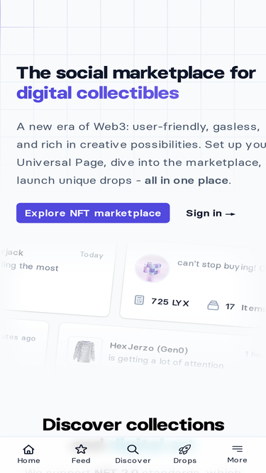 100%create and sell nfts 2.0 on universal page - the all-in-one creative platform on lukso. build your personalized nft store, discover digital collectibles, or launch your own drop with ease.