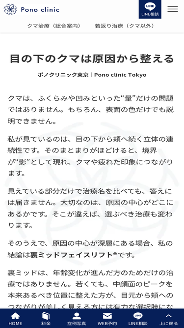 89%目の下のクマ取りを、色ではなく“構造(層)”から整理。脱脂・裏ハムラ・裏ミッド・PRPFの適応と限界を医師が解説。適応は診察で判断|東京・新宿